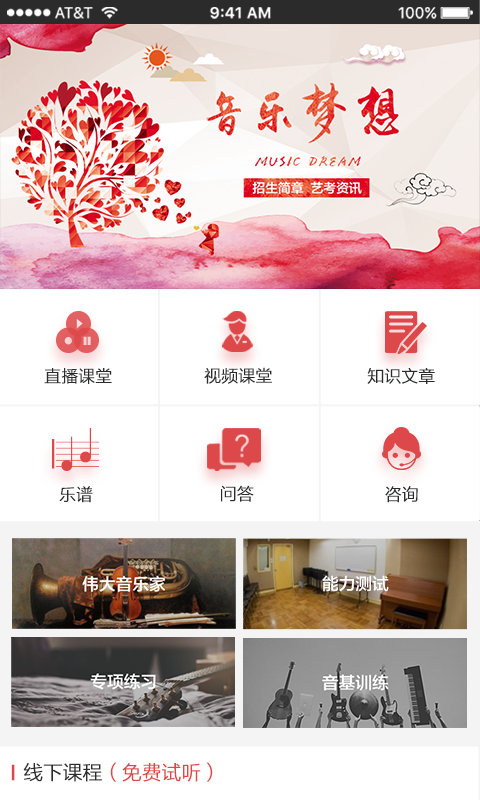 音未,隶属于北京国音未来教育科技有限公司,又称“音未课堂“,英文名称为“InWave”。是一款全方位融合专业化、考学化、半娱乐化为一体的一站式音乐教学。从启蒙阶段到少儿训练再至专业教程,内容不仅局限于视频教学,更多包含了适于各个层级阶段的能力测试、专项练习、音基训练、经曲乐谱、问答资讯、音乐家趣事等。