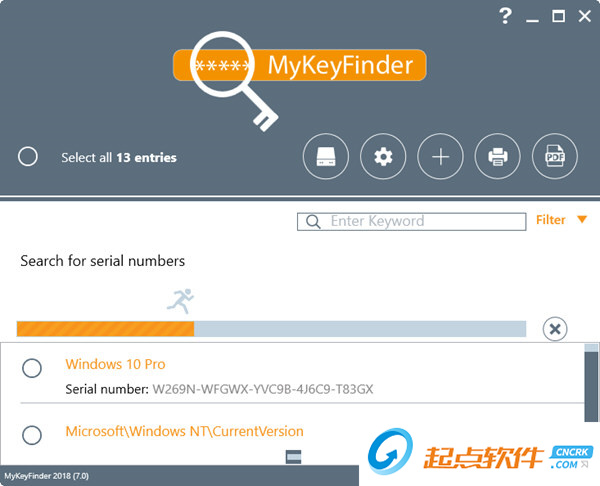 产品密钥可能存储在不同的位置,甚至可能会多次使用。MyKeyFinder过滤和删除所有无效的密钥和所有重复的条目,所以你不必担心它。