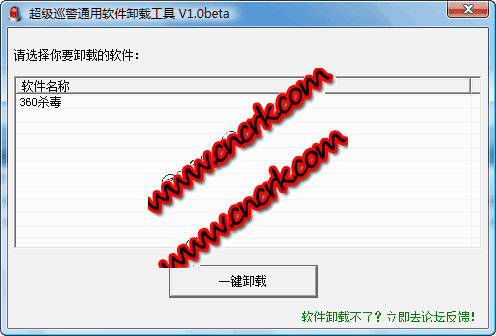 超级巡警通用软件卸载工具 V1.0 beta 简体中文绿色免费版 近日,我们接到众多网友投诉,一些产品无法进行干净卸载删除,应广大网友要求,我们推出通用软件卸载工具。