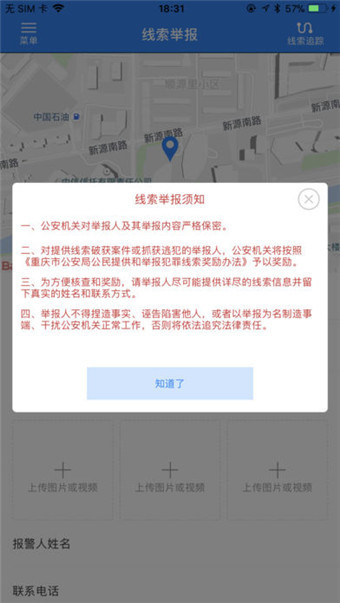 群众可以通过“重庆110”APP提交自动定位和报警人姓名、电话,还可以将现场情况的照片、视频上传到平台,进一步完善警情细节。