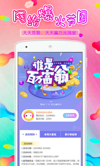 谁是百万富翁手机版全民都可参与的有奖问答游戏。答题赢现金!