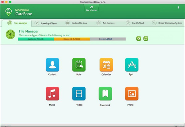 iCareFone是一款适用于Mac平台上的iOS设备优化维护软件。该软件可帮助用户高效的管理iOS设备资料以及iOS设备中的文件,并自动修复iOS系统所存在的多种问题。