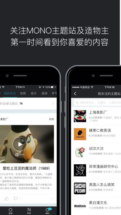 - MONO包含了丰富的主题,以及全网最优质的内容生产者- 关注你感兴趣的主题站和造物主,在内容更新时MONO会第一时间通过推送告诉你。