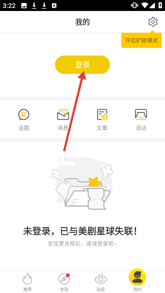 2. 在【我的】界面,轻点【登录】按钮就能执行登录动作。