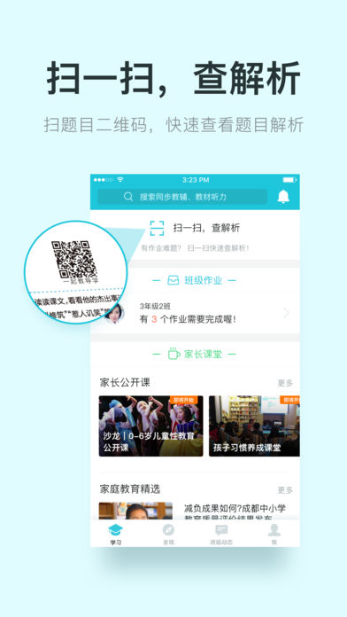 1.家校沟通:轻松创建网上班级,老师发消息一键必达,家长看通知绝无遗漏;2.作业管理:丰富教辅app内同步上线,布置作业轻松勾选,学生作业可通过签字、拍照、语音全方位反馈,老师可置顶表扬,家长更能互相点赞、参照、交流;