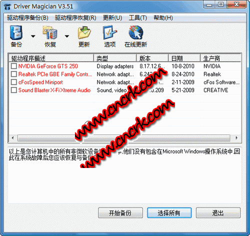 Driver Magician Pro V3.51 完全汉化纯净安装版 Driver Magician是一个非常容易使用的驱动程序备份工具,程序可以帮助你快速的将系统中的驱动程序备份下来,以后如果重新安装操作系统的时候你就可以非常迅速的将系统中的驱动程序还原,节省你大量宝贵的时间。程序还可以备份我的文档、收藏夹、Outlook邮箱等相关信息。