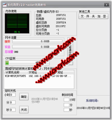 可以查看电脑的内存、CPU、网卡的信息,还可以检测到局域网所有的计算机信息以及网卡、IP地址
