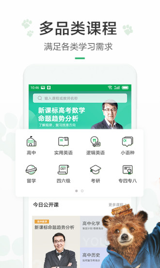 有道精品课是网易有道公司出品的在线教育产品,涵盖上千门优质课程。有道精品课精心打磨每一类细分领域课程,名师合作,权威题库,为同学们提供优质的学习课程,解决作业难题。网易有道精品课堪称网易良心精品。【软件特点】
