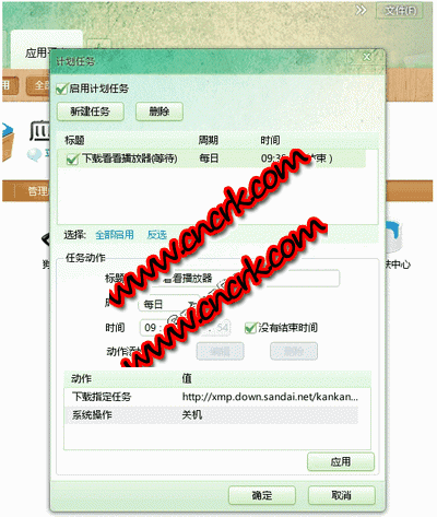 这就是大家期待已久的“增强计划任务”插件,可以实现诸如“指定时间下载某个任务、指定时间开始全部任务、指定时间关机、注销、睡眠、重启”等功能