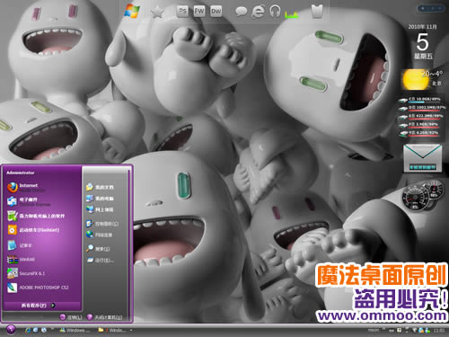 数码娃娃电脑桌面主题 简体中文官方安装版 魔法桌面原创3D数码娃娃电脑桌面主题,整款主题以灰色为主,简洁大方,时尚又可爱,犹如壁纸上的娃娃一样,惹人喜爱。赶快来体验吧