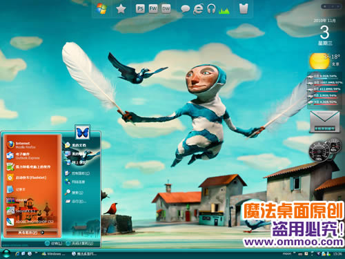 飞翔的艺术家电脑桌面主题 简体中文官方安装版 魔法桌面原创飞翔的艺术家电脑桌面主题,壁纸采用了水粉画的形式,整款主题充满了艺术的气息和幻想的空间。赶快来体验吧!