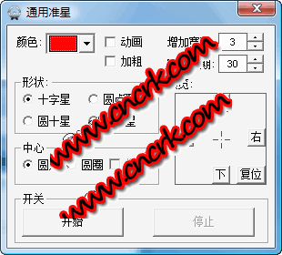 用途:FPS游戏 主要用于AVA的准星。 1.准星颜色 2.动态准星 3.准星大小可调 4.四种准星 5.体积小 注意:只能在开启准星前设置准星大小和闪烁频率,除此之外都可在开启时更改。