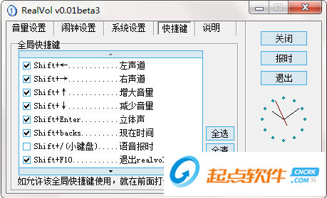 全局快捷键:Shift+→右声道、Shift+Enter立体声、shift+backs现在时间......