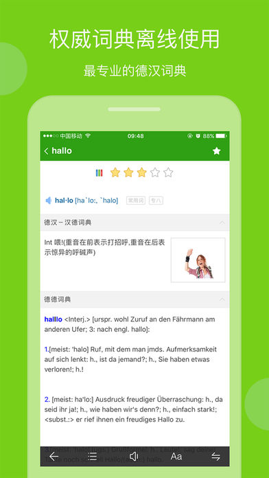 ====《德语助手》提供了权威的德语学习参考====- 德汉-汉德词典、德德词典、德英词典,历经数年修订,权威详实;