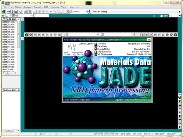 MDI Jade用于处理X射线衍射的数据,把经过Jade软件透彻分析的结果形象生动的展现给用户,除了基本的显示图谱、打印图谱、数据平滑等功能,主要功能还有:1、物相检索——通过建立PDF文件索引,Jade具有优秀的物相检索界面和强大的检索功能。