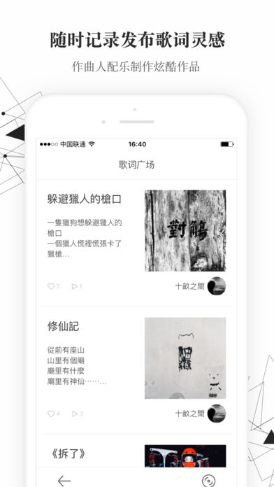 1、随时随地记录自己突然迸发的音乐创作灵感。2、一键关注欣赏的音乐人,随时查看他的动态。