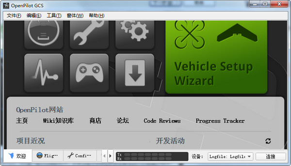 OpenPilotGCS在Windows、Linuxx32/x64和MacOSX上运行。
