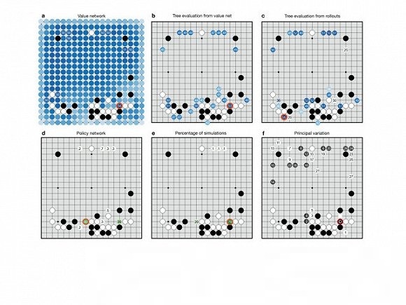 在获取棋局信息后,阿尔法围棋会根据策略网络(policy network)探索哪个位置同时具备高潜在价值和高可能性,进而决定最佳落子位置。在分配的搜索时间结束时,模拟过程中被系统最频繁考察的位置将成为阿尔法围棋的最终选择。在经过先期的全盘探索和过程中对最佳落子的不断揣摩后,阿尔法围棋的搜索算法就能在其计算能力之上加入近似人类的直觉判断。