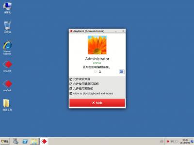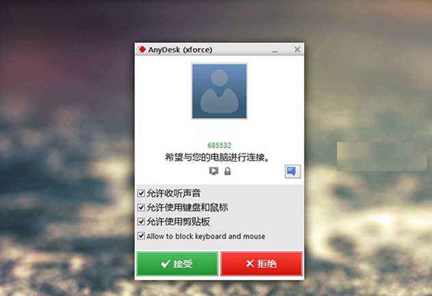 而在「其他工作台」一栏中,输入别人的 AnyDesk 地址并点击连接按钮,即可向对方电脑发出控制的请求,待被控电脑点击「接受」之后 (如下图),即可开始远程控制对方桌面。