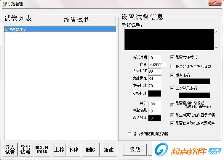 V5.2更新:1、随机抽题功能:从题库中随机抽题供考生作答,保证每个考生的试卷都不一样。用于考生平时自测也十分方便。