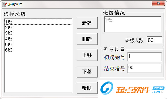班级管理:选项有新建班级、删除班级、改变班级位置、考号设置等功能。