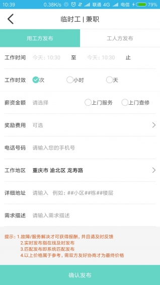 为工人兼职人员提供一个有保障的第三方平台软件,你有技能或者时间,不管你有工作或者没工作,你只需要一部手机打开工帮帮APP,只要你有技能有时间就能赚钱。