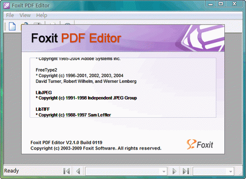 Foxit PDF Editor V2.2.1 英文绿色便携版 Foxit PDF Editor 是第一个真正的PDF文件编辑软件。许多人都希望能找到一个象编辑其它类型的文档的编辑器,事实上在 Foxit PDF Editor 出现之前,根本没有这样的工具。每一个PDF 文件都包含很多页面,每一页包含各种可视对象,如文本对象、图形对象和图像对象。而每一个对象都由其属性来定义其显示的方式。