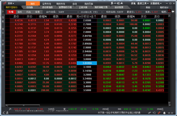 1.普通的行情展示功能第一创业期权交易系统在期权行情方面,提供了普通的行情展示功能