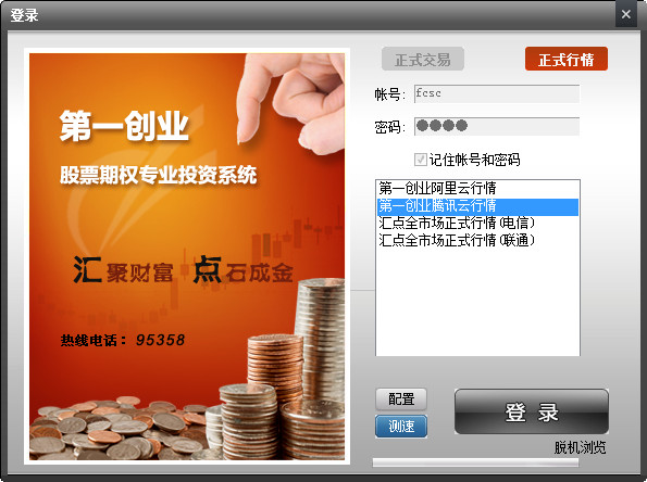 第一创业期权交易系统提供集期权行情、研判分析和期权交易一体化的操作体验。第一创业期权交易系统在期权行情方面,既提供了普通的行情展示功能,还可以通过定制版面实现更加自由和个性化的版面编排,研判分析功能,可以计算期权的理论定价和期权价格对不同影响因素的敏感性,期权交易提供针对低端客户群和高端客户群的双交易模式,并且实现行情版面和快速下单的完美融合,让交易更加快速、高效。【软件特点】