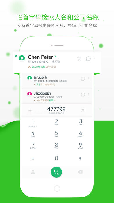 5,T9可以检索联系人公司名称;