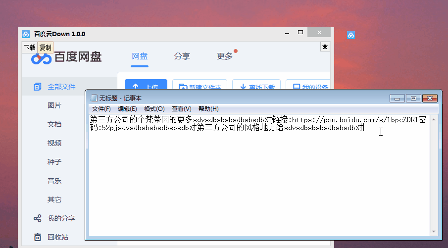 很多人说不知道怎么用,我在这里说说.把主窗口最小化后(自动隐藏),然后复制你要下载的百度云地址
