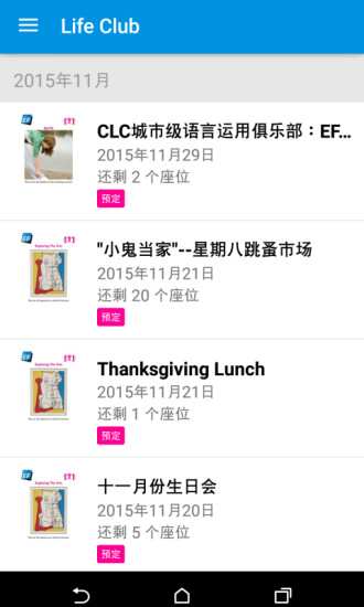 5、获知当前的Life Club活动信息并方便快捷的预定