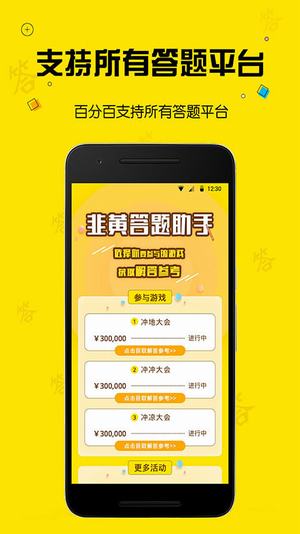 韭黄答题神器app是一款全新的答题辅助软件,韭黄答题神器app操作简单,使用方便,用户通过韭黄答题神器app可以快速获取正确答案,更加快速的完成答题,韭黄答题神器app百分百支持所有答题平台,赢走现金大礼不是梦,欢迎下载韭黄答题神器app使用体验。【软件特色】