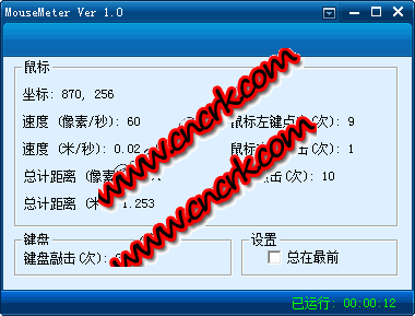 MouseMeter 可统计键盘敲击次数、鼠标点击次数以及移动距离,无需设置屏幕分辨率及尺寸,无需安装直接运行,一款挺有意思的小软件