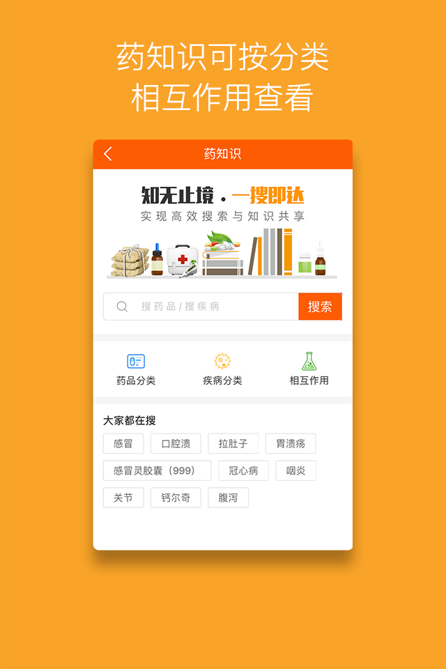 一键查询阅览疾病、药品知识,如相关治疗药物、相互作用药品、用药指南等信息,打造您的掌上专业疾病药品知识库。