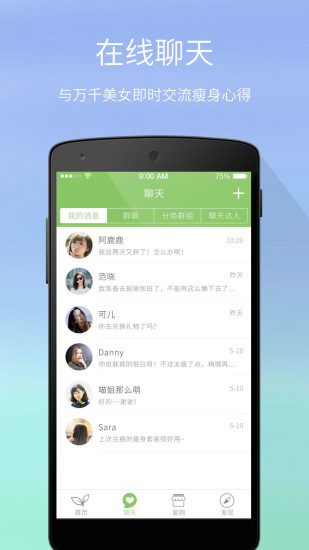3、聊瘦身:瘦身圈子、瘦身心得...和MM们聊减肥瘦身话题,交朋友,成闺蜜;