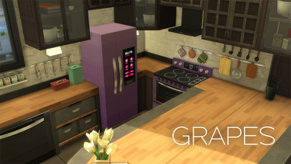 这台冰箱有9种不同的颜色样本,其中8的比赛之前我上传的simkitchen 2000系列灶具,一个完全匹配的厨房!