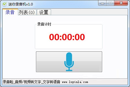 迷你录音机 v1.0 免费版 迷你录音机软件是一款免费绿色的录音机工具。该工具非常小巧好用,只需打开软件,点击录音即可快速录制,可支持线上、线下以及在线音视频声音录制 。