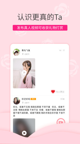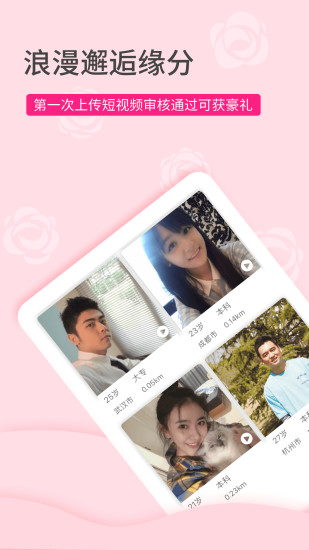 【脱单神器】定时推荐全国、同城在线寻爱的单身与您相亲、聊天交友,助您觅得珍爱,找到合适自己的有缘人,让生活不在孤单寂寞;【视频打赏】视频相亲约会,征婚求姻缘,快速约会,高效恋爱,为女神/男神打赏礼物,捕获芳心;