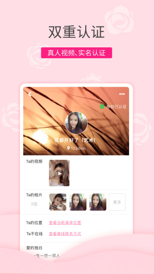 【严格审核】真诚相亲交友,拒绝一切不真诚的相亲交友行为。单身用户头像均需通过人工审核后方可展示给其他用户,违规用户查实后将给予禁封账号或设备的处罚。