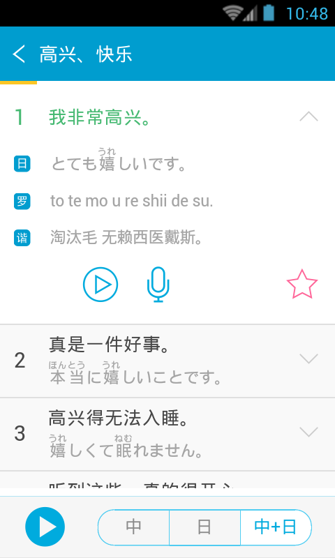 (4)真人优质发音+例句录音评分,助您轻松开口说地道日语。