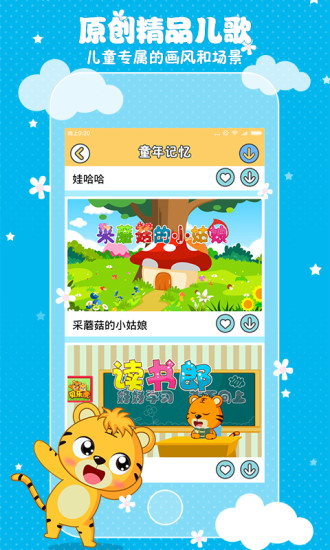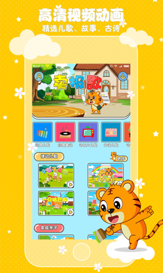 - 精选儿歌、故事、古诗制作成高清视频动画- 精心打造儿童专属画风和场景的原创儿歌