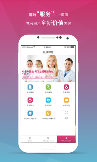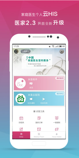 医+,我的私人诊所!一款以“家庭医生为核心”,同时配备三甲专科、护士护工的社区居民健康管理APP。助您组建“全科-专科”医生团队,构建自由执业新模式,轻松拥有签约用户,双向管理病人,积累宝贵课题数据同时让社区居民获得高质量医疗服务。同时建立患者-全科-专科转诊服务通道及患者的信息收集,让全-专科医生图文/电话方式探讨病情,高效协作。