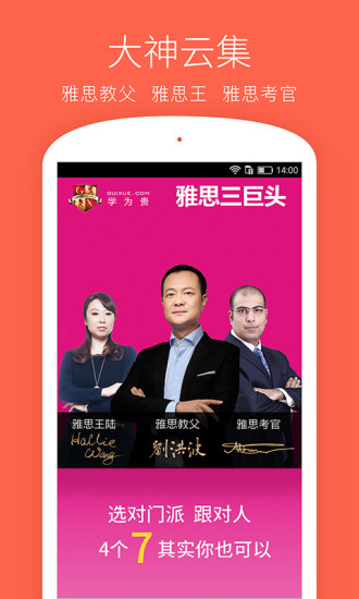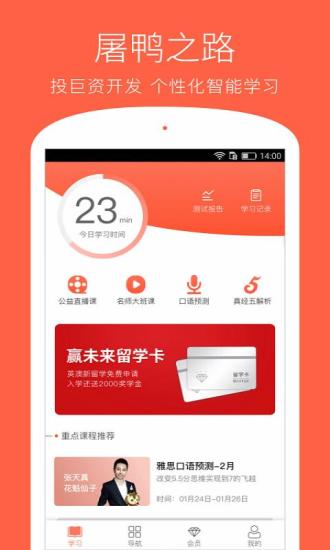 雅思考试官方合作机构。提供实用有效的雅思课程及听力、口语、写作、阅读全方位训练服务,被学生称为烤鸭必备神器。我们只用成绩说话,在国内,10个雅思9分,8个出自我们;雅思教父刘洪波、雅思王王陆都在我们这里。【软件特点】