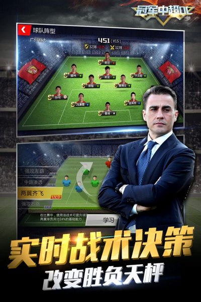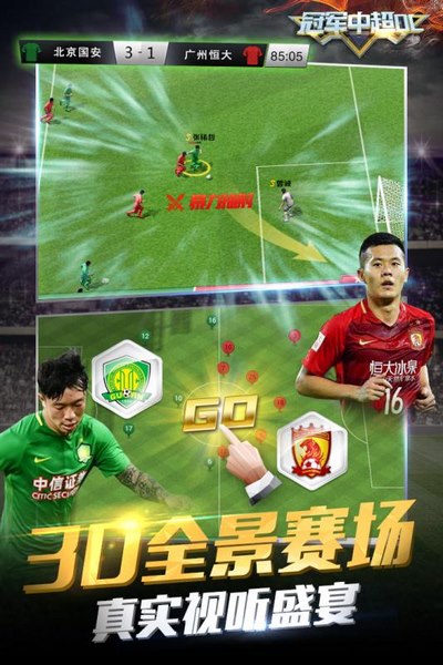《冠军中超OL》是一款中超足球经理类手机游戏,球员数据庞大专业,超过5000名现役球员,媲美《FM足球经理》的专业数据,每名球员还有照片级的3D头像,还拥有接近PC游戏画质的3D渲染引擎和强大的AI动作引擎,比赛场景真实生动。【玩法介绍】