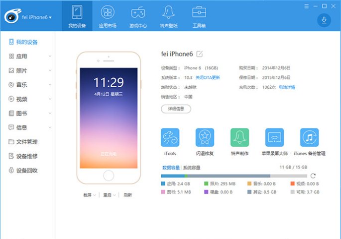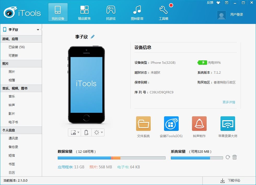 iTools是一款领先业界的苹果管理软件。用户可以使用iTools非常方便的完成对苹果设备(ios系统,包括iphone,ipad,ipodtouch)的信息查看、音乐/铃声/照片/书籍/文件管理、软件安装、互联网资源下载甚至是设备系统修改等。iTools与业内同类软件相比在软件大小、资源占用、运行速度、功能完备、产品体验上都有显著的优势,创想天空团队相信通过自己的不断努力,iTools一定会永远是苹果爱好者的最佳选择!