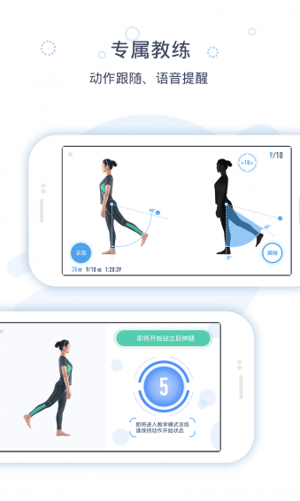 3、所有的动作均配有真人演示实时指导,且能看到脉吉康复设备捕捉到的您的跟随动作及该动作关节的角度、得分并实时显示在界面上。