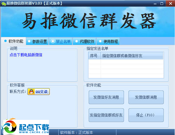 易推微信群发软件免费版是一款专为微信营销人员所提供的微信群发工具。用户只需要在软件中输入要推送的微信群或者微信好友名称,点击发送即可,非常方便。
