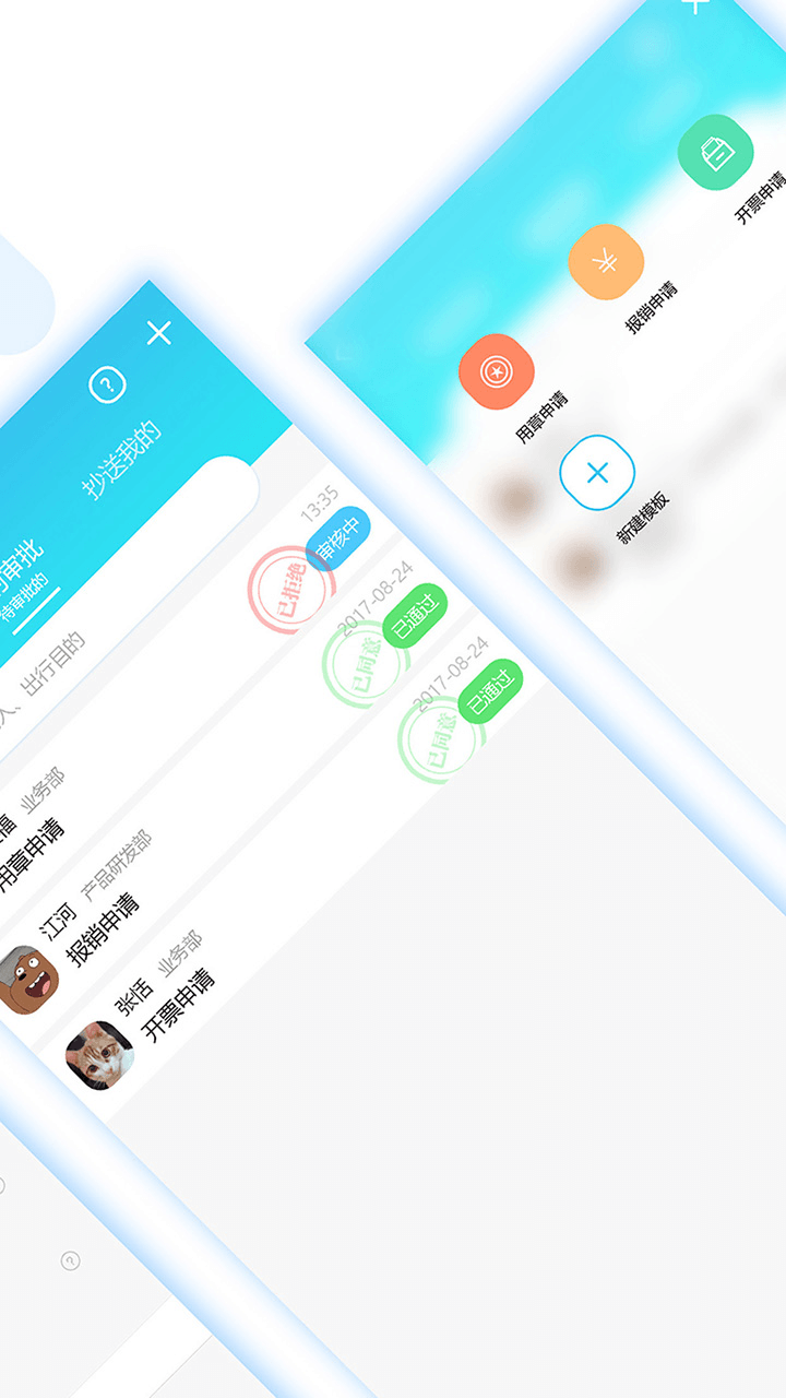 【定制流程】 : 用户可以为出行、请假等事件建立固定审批流程,也可以启动自定义流程。