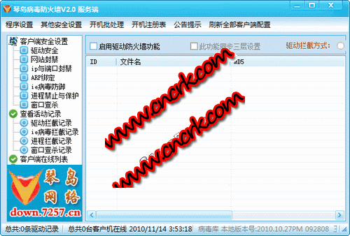 琴岛网络病毒防火墙合网吧使用(客户端要求有还原软件),能有效防止各种病毒(包括流行的机器狗、下载者、鬼影等恶性病毒)对局域网内系统的侵害!